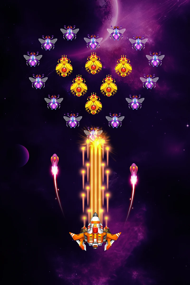 "Galaxy Battle Deep Space Shooter" is a super fun 2D vertical screen flight shooting game.The Chinese version of Galaxy War Deep Space Shooter is based on the classic shooting game Thunder Fighter to create a more cool shooting game for you. It also adds more playable elements and equipment upgrades based on it.You can continue to pass levels, eliminate more enemies, and obtain more diamonds to unlock more advanced fighters, so that you can challenge the BOSS and become the hero who saves the galaxy.